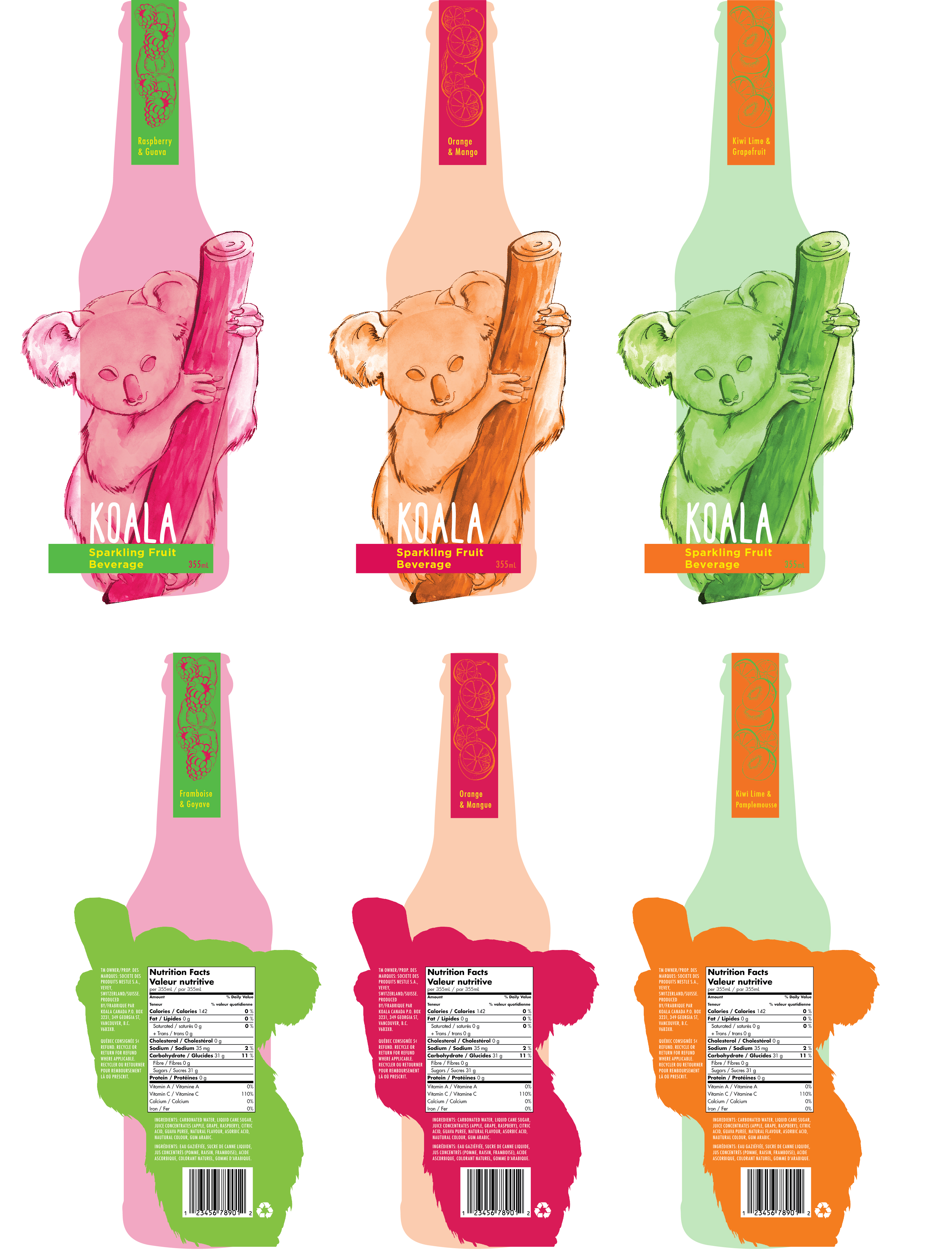 Redesign of existing Koala Sparkling Fruit Beverage.